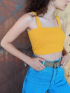 A peça possui alças largas e modelagem reta, que valoriza o busto e se adapta com leveza a diferentes tipos de corpo. Seu comprimento cropped permite composições versáteis, funcionando tanto em propostas mais casuais quanto em produções urbanas e elegantes.
