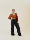Ideal como base para diversas composições, do casual ao sofisticado, a pantalona é uma peça-chave no guarda-roupa de quem valoriza autenticidade, conforto e produção artesanal. Cada unidade é feita por um coletivo de mulheres do cerrado goiano, que acompanham com precisão todas as etapas do processo — do corte à costura — resultando em um acabamento único e cheio de intenção.